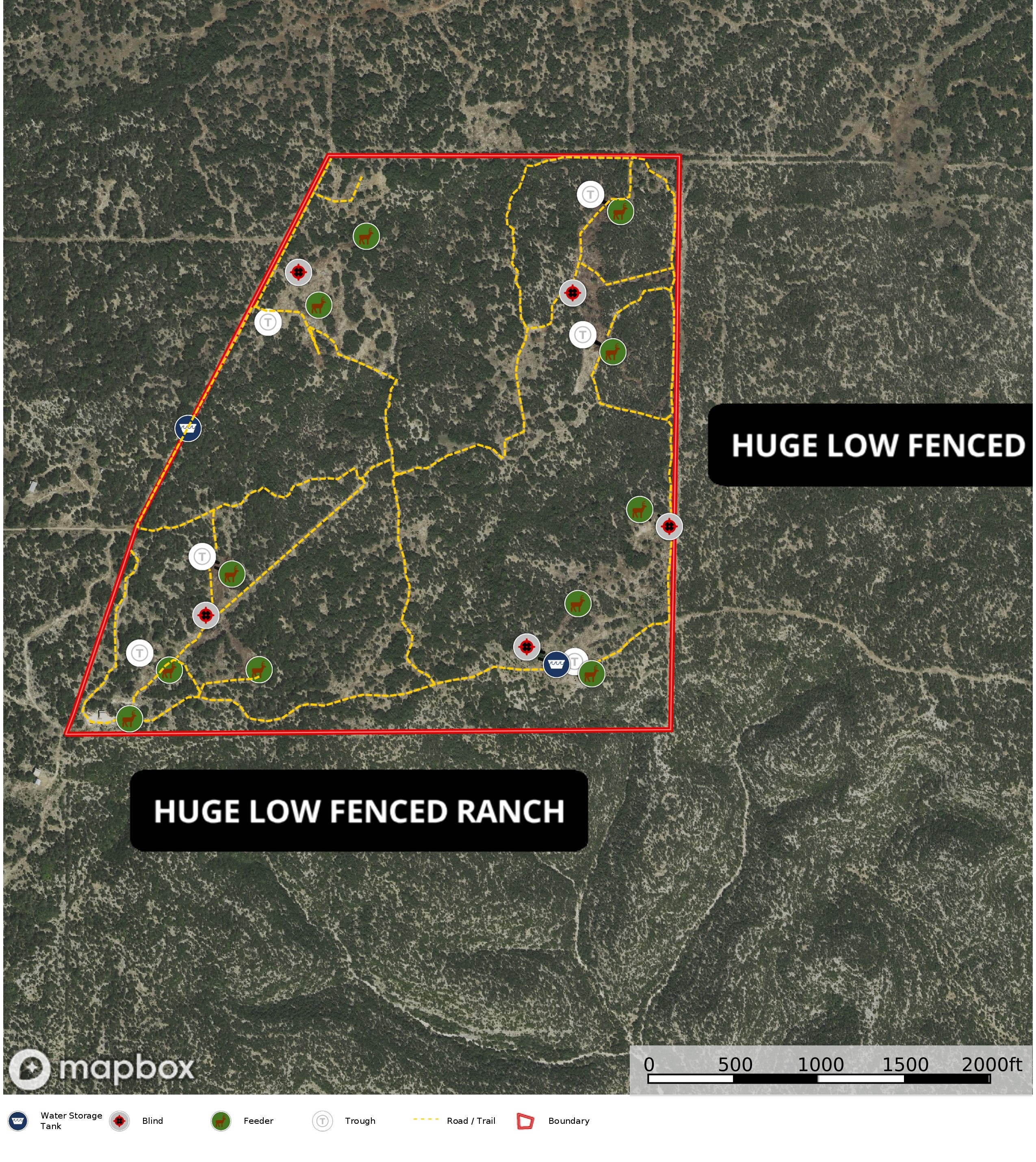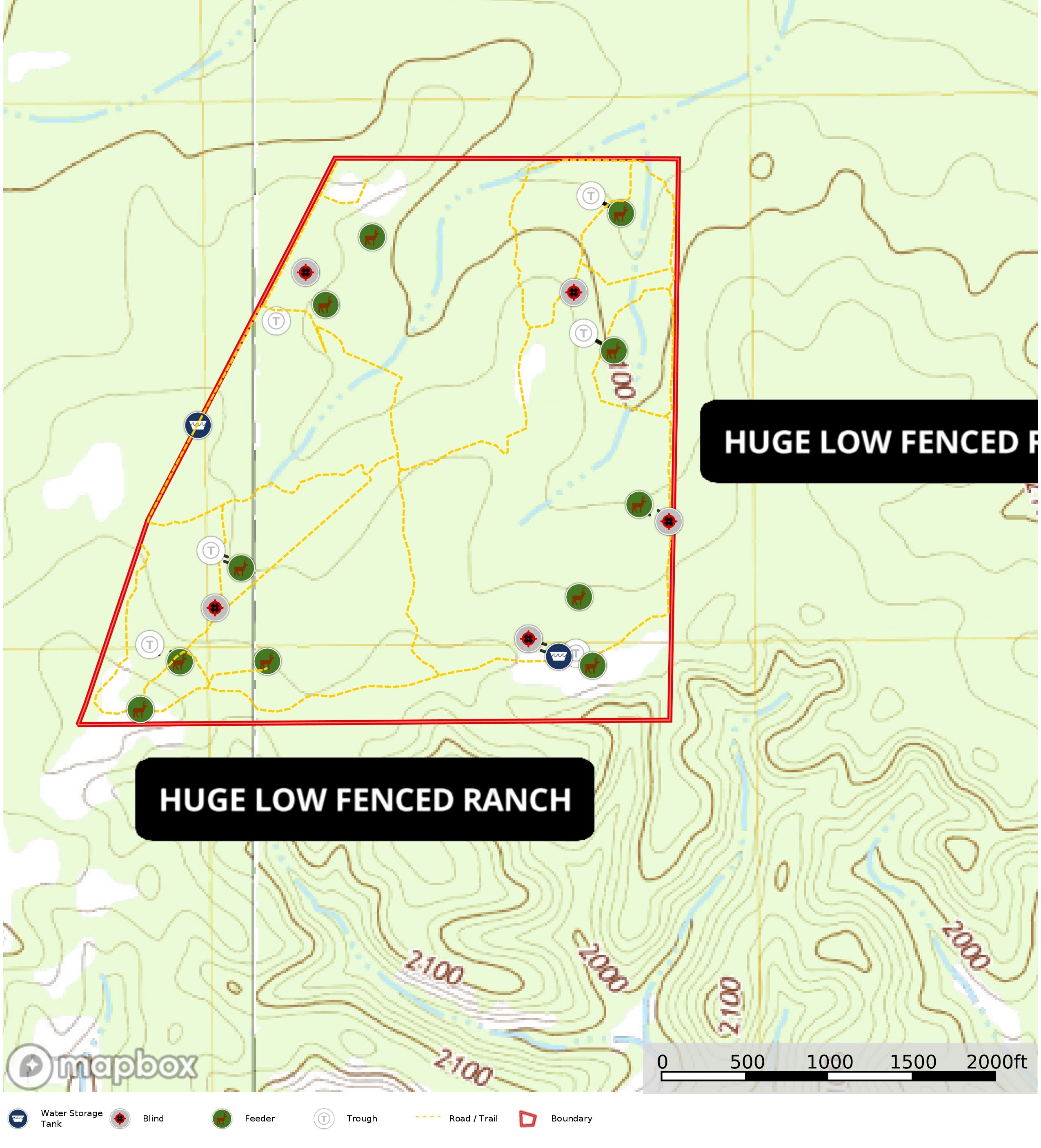 5 first class hunting blinds, numerous spin cast feeders, hay feeders, protein feeders and watering troughs scattered throughout the ranch