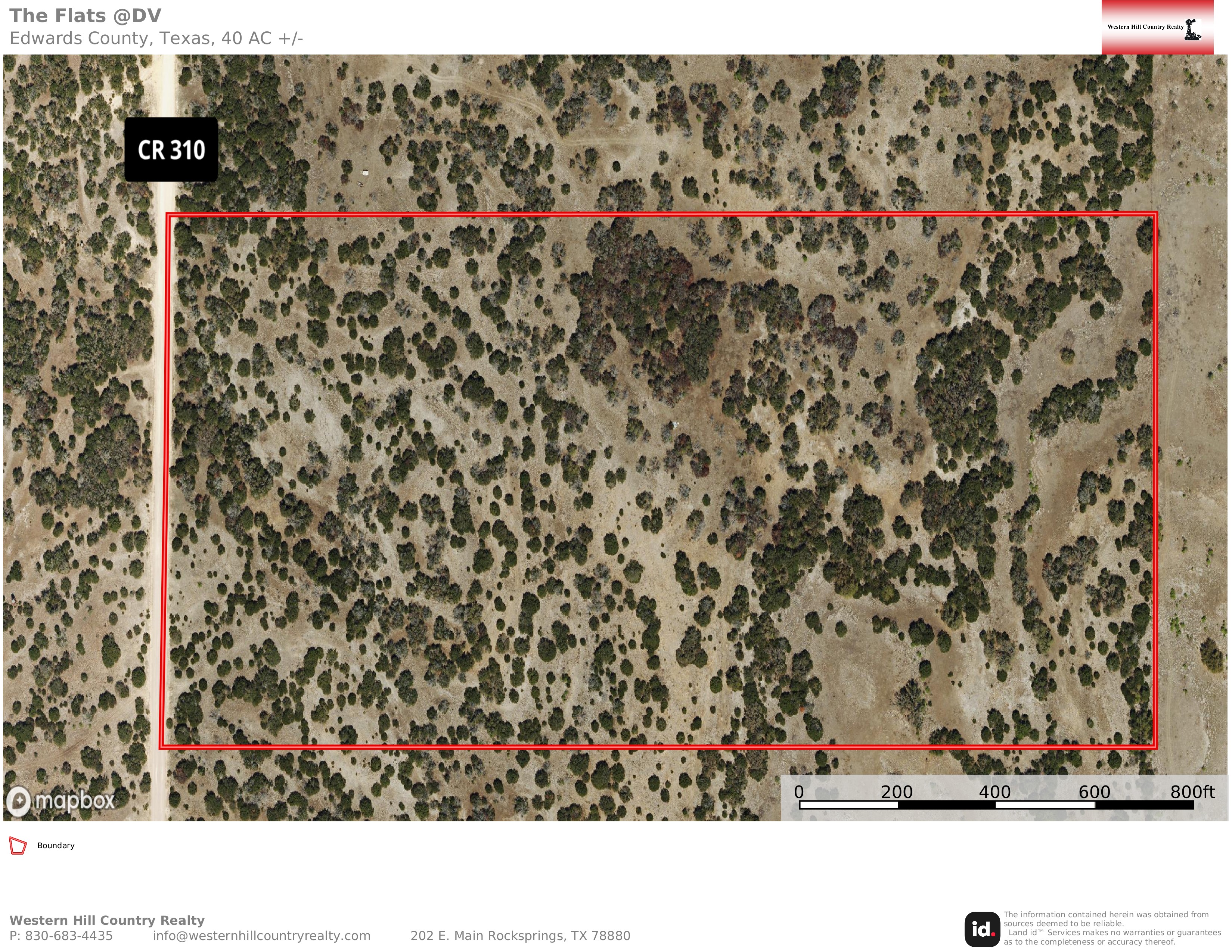 Located in central Edwards County, just 10 minutes from Rocksprings, The Flats at DV offers +/-40 acres of highly usable land with outstanding accessonly 2 miles off the highway via a county-maintained road. The terrain is level to gently sloping, making the entire property accessible and ideal for recreation or development. Abundant topsoil throughout the ranch presents great opportunities for food plots, while moderate to thick vegetation provides excellent cover and habitat for wildlife.