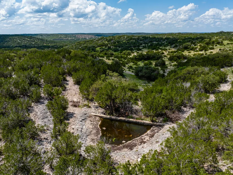 The ranch offers a secluded location at the end of the road. The terrain is gently rolling with gradual elevation changes from 2,100-2,200ft. Approximately 75% of the land is covered in native brush, including live oaks, persimmon, and mountain laurel. The remaining 25% consists of pastureland. The property includes a small pond and good interior ATV trails, making it fully accessible.