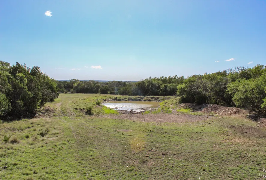 The terrain includes both sides of a draw, with oaks, mountain laurel, persimmon, and other open spaces spread across the ranch. Wildlife thrives here, including axis, fallow, and whitetail deer, aoudad, blackbuck, quail, and turkey. Hunting improvements include three blinds, four corn feeders and one protein feeder. Some blinds and feeders will convey with the sale.