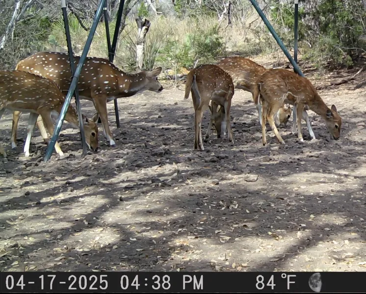 An established camp area rests beneath the live oaks, making it a comfortable spot to enjoy the outdoors. The property also has access to a shared water well just down the road, with electricity available in the area. For hunting, the ranch comes equipped with two blinds, two feeders, one hog trap, as well as game cameras and hog night lightsall ready for immediate use. Wildlife on the property includes whitetail deer, turkey, hogs, axis, and aoudad.