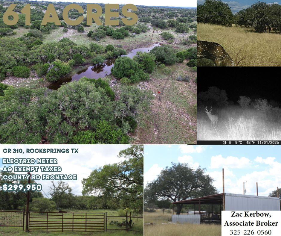 Enjoy the ease of access and gated entrance, less than 10 miles south of Rocksprings with county maintained road frontage and electricity, with meter loop and breaker box in place. There is a well-constructed 800' metal barn that could easily be converted into barndominium, RV parking or cabin.