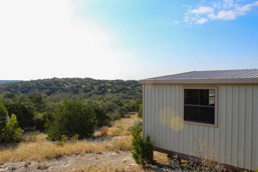 Red Bluff Retreat offers 75 acres for sale in Edwards County, Texas. This hunting ranch combines rugged scenery, Red Bluff Creek frontage, and ready-to-use improvements. The property features over 1,500 feet of wet-weather Red Bluff Creek lined with large bluffs, open meadows, and big oaks along the bottom. A 400 sq/ft metal Morgan building sits on an elevated point with wide views across the creek valley, offering a comfortable setup for weekend stays or a base camp for future development.