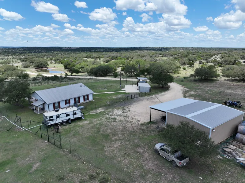 Sitting high on the hilltop overlooking the gentle valleys of southern Edwards county sits a freshly painted and updated like new 3/2 custom built 1800 sq ft home completely furnished with open living and kitchen area, large sun room and bar, screened outdoor kitchen, large hidden gun safe, patio and fire pit, central heat and air