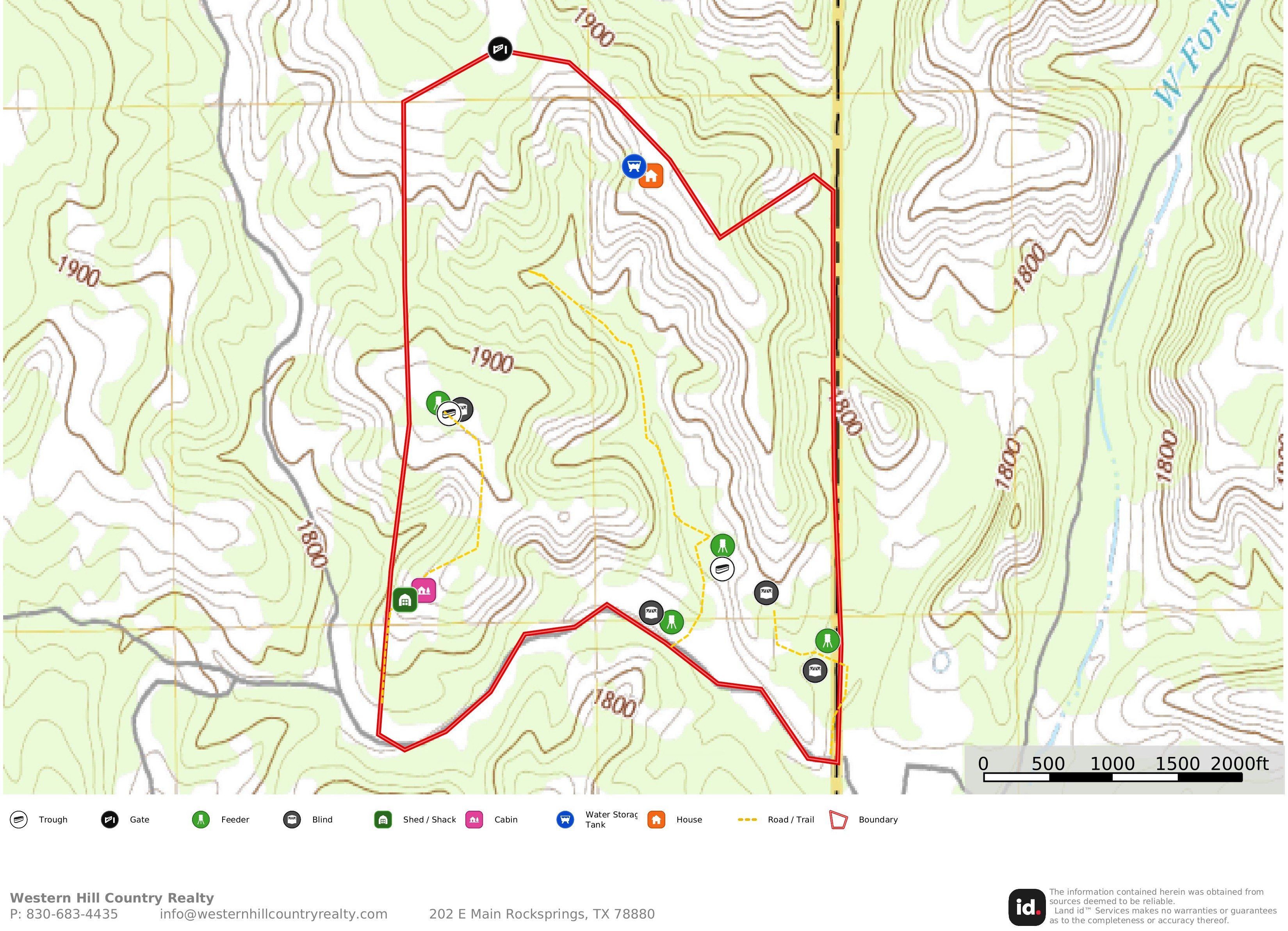 A well-maintained trail system leads to four hunting setups with blinds and feeders, and two wildlife watering troughs help sustain the native and exotic game, including aoudad, whitetail deer, axis, turkey, and hogs. Much of the land remains undisturbed, serving as a sanctuary for wildlife and offering excellent opportunities for hunting, hiking, or exploring.