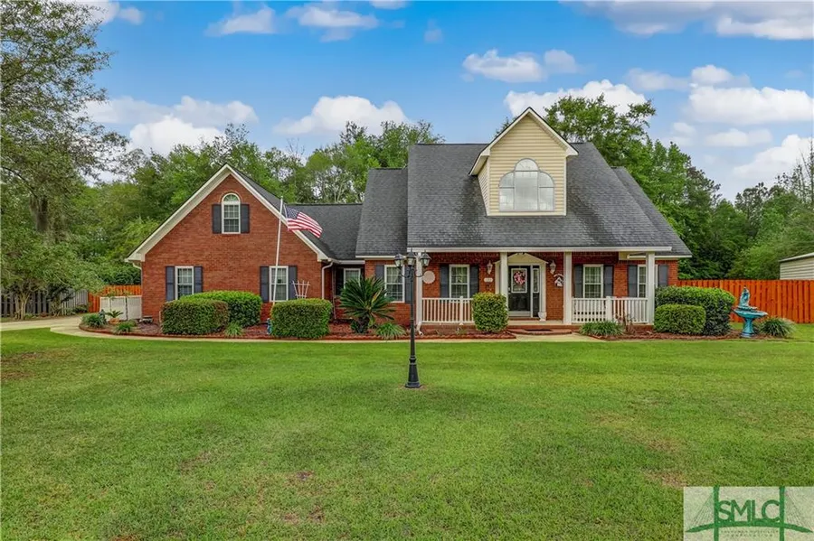 AN ADDRESS FIT FOR A LIFESTYLE: 121 Olde Manor Lane emulates the serenity and space you would expect from an old world property, but is perfect for today's casual lifestyle! Nestled on a beautiful 1.39 acre lot on a quiet cul-de-sac just off of hwy 30, you will feel a million miles away from the hustle and bustle, yet have easy access to Pooler, Rincon, I-95 and more. The all brick home boasts a low country front porch, a 2-story vaulted entry, a formal dining room, a family room w/ fireplace open to the eat-in kitchen complete with stainless steel appliances, a large island, granite countertops and backsplash. Enjoy the ease of indoor/outdoor living thanks to the patio sliders leading to the expansive back covered deck and patio spaces. The bedrooms are all located on the first level, while a bonus room and a 2nd 1/2 bath are located upstairs. No HOA, a 40' RV slab, a front yard irrigat...