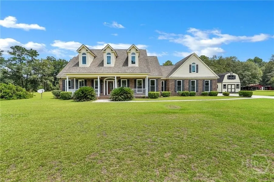 ENJOY COUNTRY LIVING ON 5.93 ACRES within reasonable proximity to shopping, restaurants, & entertainment in popular Pooler. Beautifully renovated full brick home; freshly painted, new luxurious vinyl floors, counter tops, appliances & more. This home serves as a 3 bedroom, 3 bath with a bonus room; or a 4 bedroom home that features a split bedroom plan ensuring privacy and comfort. The primary suite boasts an ensuite bath with double vanities, soaking tub and a separate shower. The welcoming foyer draws you to a spacious greatroom with a vaulted ceiling, built-in bookshelves and a cozy fireplace. The formal dining room leads to a fully equipped kitchen with ample cabinetry, new appliances, granite counter tops and breakfast area. Double garage with a utility sink, closet storage, and protective apoxy floor covering. Step outside onto the covered oversized covered porch or sit in the heat...