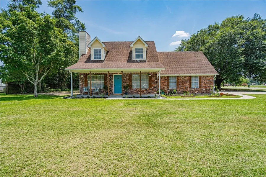Charming 3-bedroom, 2-bath home on a spacious corner lot in Goshen Hills! Majestic live oaks and a wide front porch invite you in, while an accent wall in the foyer adds a stylish touch. The large living room flows into an updated kitchen featuring butcher block countertops, a deep sink, modern hardware, task lighting, and a custom pantry with a sliding barn door. The downstairs bedroom includes a ceiling fan and built-in closet system for smart storage. Upstairs offers two generously sized bedrooms and a refreshed full bath. Step outside to a cozy covered patio and oversized 2-car garage with extra space for hobbies or storage. Sitting on over half an acre—with a shed that stays! No HOA, so bring your boat or RV. Convenient to GA 21N, I-95, Gulfstream, the airport, Pooler, and downtown Savannah. This one won’t last!