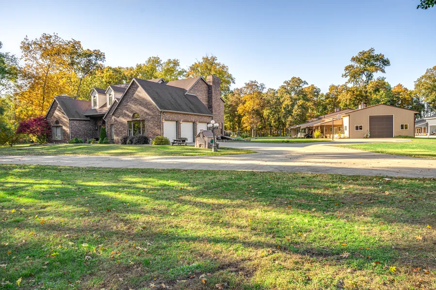 Why wait to build when this all brick 5 bd. home has so much to offer! Surrounded by 4.18 beautiful acres in the Lake Sara area, this fabulous home offers: a soaring ceiling with a winding staircase in the entry; a formal dining area that includes a built in Buffet with 22 of cabinets & floor to ceiling windows that fill the room with natural light; a cozy den with a masonry fireplace flanked by built-in bookcases & a 11 wet bar for entertaining; a superbly designed kitchen with 66 feet of custom oak cabinetry enhanced with Corian counter tops, an island, pantry & appliances; a comfortable family room just off the kitchen with a masonry fireplace & French doors that allows the entertaining to spill out onto the backyard decks and patios; a Master suite that includes French doors that open to the backyard deck, a 13 x 10 walk in closet & a stunning bath a w/ double vanity, jetted tub & a ceramic tiled walk-in shower. The upper level includes a library that overlooks the entry with built in bookcases & floor to ceiling windows to maximize the light, plus access to the private balcony, 3 bedrooms & a bath. The basement is partially finished with plenty of storage plus an impressive bath. Extra features include- 10 ceilings throughout, 3 HVAC units, 3 hot water heaters, a whole house generator; a heated 32 x 100 outbuilding that includes a 43 x 12 lean-to & another 54 x 18 lean-to with patios, two overhead furnaces, a tool room & wash room with pluming for a future bath & a hot water heater for the spicket to wash the cars in cooler weather. The perfect blend! Call 217-342-2775 for more information or to view the property.