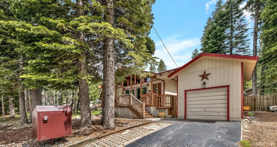 Highly desired Ponderosa chalet with beautiful pine ceilings and lots of natural light! This home is move in ready with many upgrades including a remodeled kitchen featuring granite slab counter tops, newer cabinets, and light fixtures, remodeled bathrooms, and beautiful wood flooring throughout. The list goes on with a tankless water heater, bear box, trex decking, and newer freestanding gas fireplace. Owners have made other upgrades including a beautifully landscaped front and back yard including raised garden beds and a greenhouse. Smart home improvements include a smart thermostat, light switches, and irrigation timer. Icing on the cake is the home borders CA conservancy land on one side and has more conservancy across the street for added serenity. Don't miss this out on this true Tahoe gem!
