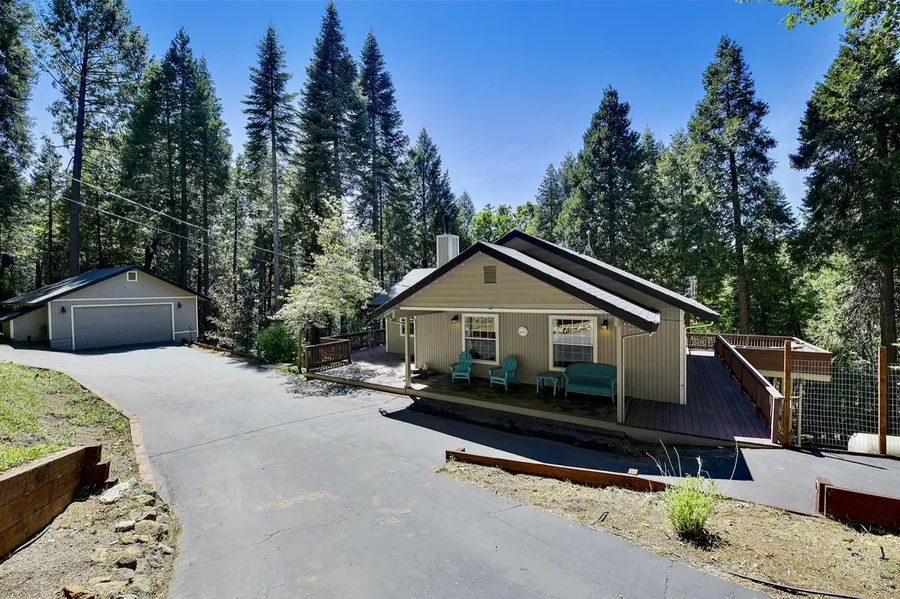 1991 home with 2048sq ft, 3 bedrooms, 2 & bath, bonus room, 5.95-acre lot, detached two-car garage, 4-car shop & a circular driveway with an automatic gated entry/exit. To the right side of the house is the shop with smooth textured, insulated walls, & could be converted to an in-law unit. Behind the shop are a garden bed area & shed. To the left of the house is a deep 2-car garage to store a boat for Jenkinson's Lake,~ 2 miles from the house. Kitchen has newer appliances & a window over the sink that overlooks the back acreage mixed pine forest. The main level half-bath doubles as a laundry room & pantry area. Beautiful laminate flooring on the main floor. Master is on the main floor with a door to the back deck. Master bath has a beautiful claw-foot tub. Downstairs are 2 bedrooms, a bonus room, & a guest bath with a double vanity & claw-foot tub. Wrap-around deck has a built-in bench w...