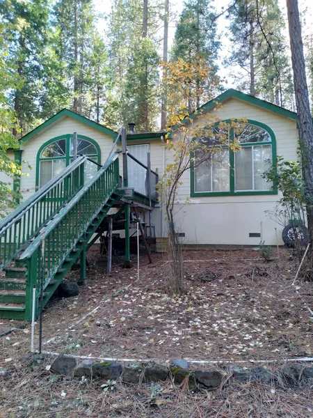 This home is a manufactured on a permanent foundation. Has a lot of room master on one end of the house and the other two bedrooms on the far end of the home. For outside gatherings there is a cement patio across the back of the house or summer BBQ's and entertaining. This is a lovely home. This is a beautiful area of pines, cedar trees and fresh air. Very nice 3 bedroom 2 bath home. Beautiful kitchen. Plenty of storage. Master bedroom is very large with a beautiful closet a crossed one end of the room. Propane heat.