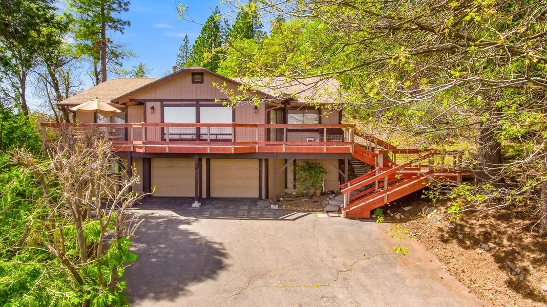 LOOK AT THAT VIEW!!! PANARAMIC SIERRA VIEW WITH A PEEK AT THE LAKE - This spacious home boasts an open floorplan with huge great room, vaulted ceiling and formal dining room. Downstairs bonus room has separate entrance and half-bath. Wired with transfer switch for generator. There is plenty of storage with workshop next to garage. New roof in 2021 and deck in 2020. Close to Sly Park Recreation with Jenkinson Lake, boating, swimming, fishing, camping, hiking and more. Located in Gold Ridge Forest with Community pool, clubhouse and frisbee golf.