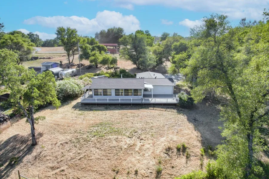 Welcome to Double D Ranch! Extraordinary opportunity to own this light-filled home in a desirable Meadowview Acres subdivision. Enter through a private gate and the sprawling driveway to this single-story house. Boasting 3 bedrooms/2 bathrooms generously distributed over 1,840 SF on a park-like 5-acre parcel of land perfect for horses and farm animals. The living room features a vaulted ceiling, wood burning fireplace and a door to the wrap around deck. Adjacent to the living room is the formal dining area with room to seat 8+ and ideal for dinner parties. Ideally located overlooking the living room is the entertainer's kitchen with SS appliances, cherry cabinets, a breakfast bar, skylights and eat-in area. When the day is over, relax in the serene sitting room before heading into the primary en-suite offering a tub and separate stall shower. Family and guests enjoy their quarters on the...