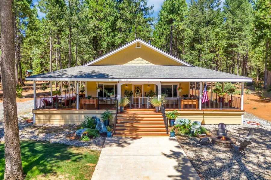 Welcome to 9105 Bear State Road, a 25-acre estate blending modern luxury with serene natural beauty. Built in 2018, this home features contemporary charm with high-end fixtures and finishes. It offers two opulent master suites, quartz countertops, and elegant woodgrain ceramic Italian porcelain tile floors. Every room provides panoramic views, enhancing the tranquil living environment. The expansive wrap-around porch is perfect for sunrises, sunsets, and gatherings. The property includes a 3000 sq. ft. shop with state-of-the-art amenities for hobbies or storage. Additional features include dual septic systems, a top-of-the-line generator, and dual propane tanks. An efficient well is paired with two underground reserve tanks for a total of 5000 gals and a filtration system. Conveniently close to amenities yet secluded, this estate combines luxury with serenity. Sellers have included plans and costs for an additional bedroom in the attachments. Discover this remarkable property today. With appropriate offer, seller will pay the first year of home insurance.