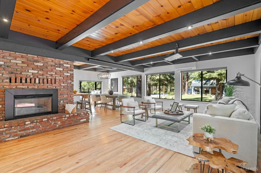 This Montgomery Estates home is truly better than brand new. Spanning 2,100 sq. ft, this exquisite 3-bedroom, 2-bathroom home has been completely transformed with a top-to-bottom remodel, stripped down to the studs and rebuilt with exceptional craftsmanship.When you walk through the front door, the love and care that was put into re-designing every square inch of this home is apparent. Every detail has been carefully curated to offer modern luxury while preserving the natural beauty that surrounds the property. The open-concept living area is bathed in natural light from large windows that frame serene views of the forest. At the heart of the home is a stunning chef's kitchen, featuring state-of-the-art appliances, custom cabinetry, butcher block, and granite countertops that make meal preparation both functional and beautiful.The spacious owner's suite offers a private retreat with vaulted ceilings, exposed beams, a walk-in closet, and a private balcony overlooking the peaceful surroundings. The bathrooms are designed for relaxation, with a deep soaker tub, four-foot wide shower, double vanity, and elegant tiling.The installation of a new Mitsubishi heat pump provides efficient heating in the winter and cool comfort in the summer-something not offered in many Tahoe homes. The five-zone mini-split system allows for personalized climate control in each room, while the upgraded 200-amp electrical panel ensures all your power needs are met. The upgraded features don't stop indoors. This home has new exterior paint and lighting upgrades, and the insulated garage is prepped for the future with a 240V outlet ready for an EV charging station. The number of upgrades done to this home is truly too extensive to list, and are best seen in person.Location is everything and this home is unmatched in South Lake Tahoe. The property is located 1/2 mile through a forest trail to the growing South Tahoe Greenway, a bike path linking Meyers to Stateline. Construction in 2025 of a new section of path and new bridge over the Truckee River will connect town amenities to an adjacent neighborhood. Once complete, shopping, dining, groceries, and the beaches of Lake Tahoe will be a short and stunning pine forest bike ride. The proximity of this new trail section offers the owner not only unmatched access to world class hiking, mountain bike trails, and river access, but also faster-than-driving bike access to town! This unique home is also situated a short drive from Heavenly Ski Resort, public parks, and is surrounded by National Forestry Land. Come see a home that checks all the boxes for mountain lifestyle.