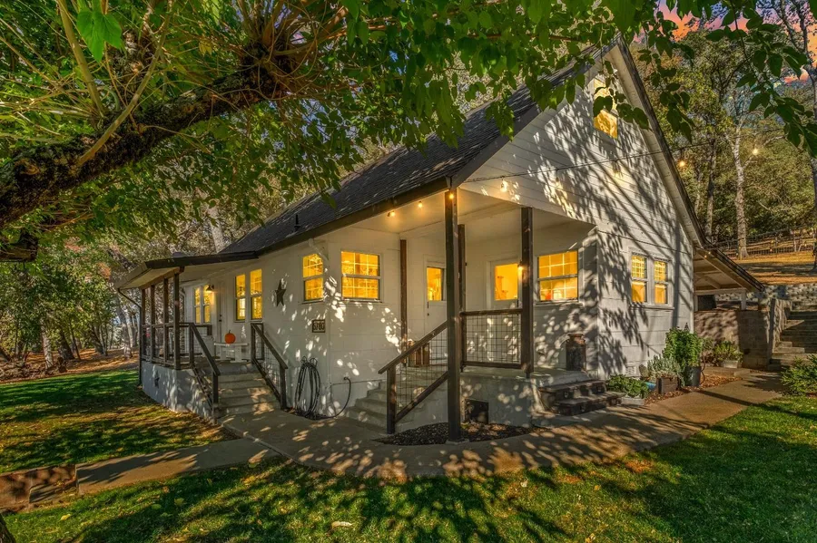 Immaculate and great location. This charming cottage style home has 2 bedrooms, 1 bath is perfectly situated on a large .66 of an acre. Kitchen features plenty of white cabinetry, pantry closet, gas range/oven, dishwasher, microwave, farm style sink. Dining room area. Living room has a cozy woodstove. Bedrooms on opposite ends of bathroom. Bathroom with tile shower over tub. Sink vanity with marble-like countertop. Recessed lights, ceiling fans. central HVAC, tankless water heater. Fenced and cross fenced. Shed. 2 car carport. Detached 1 car garage plus plenty of parking. Lots of outdoor sitting areas. Conveniently close to shopping, freeway access and amenities.