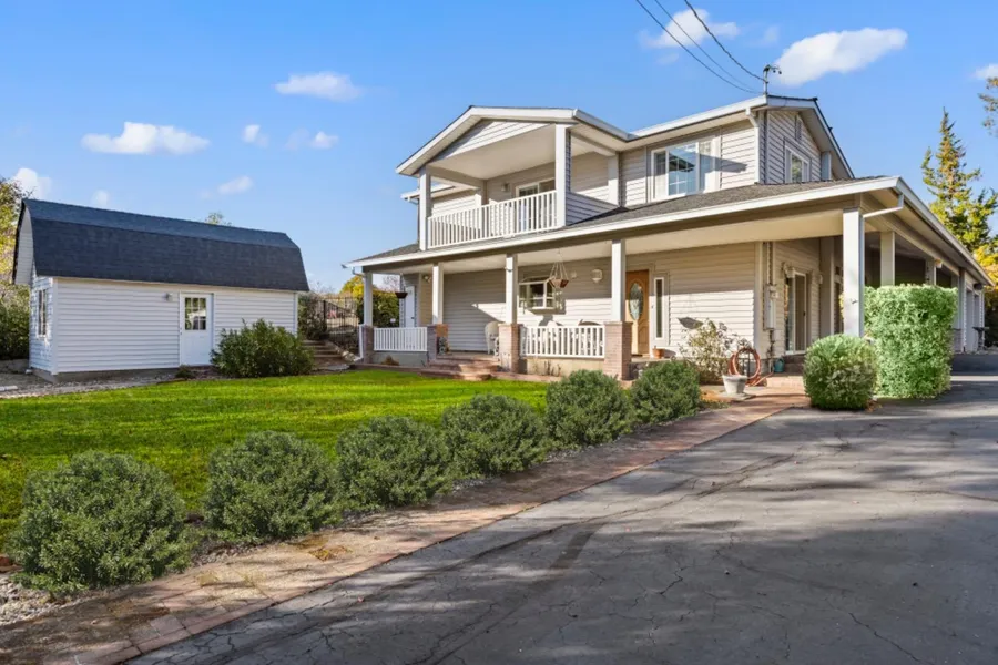 This Shingle Springs estate is a bucolic retreat. The main house offers two bedrooms and two bathrooms as well as a flexible space easily converted into a third bedroom. The property sits on approximately one acre of land, providing ample space and privacy. The remodeled kitchen features a breakfast bar, granite countertops and stainless steel appliances. You can enjoy your morning coffee with a view on your private balcony at the primary bedroom. The detached ADU provides additional space or potential rental income. It includes a full kitchen, one bedroom, one and a half baths, laundry area, a large attached garage, private backyard with a covered patio, and a dog run. The detached shed offers covered parking and storage, while the gazebo with a fire pit creates a cozy outdoor gathering area. The expansive lot includes an additional small detached structure with a loft and full bathroom...