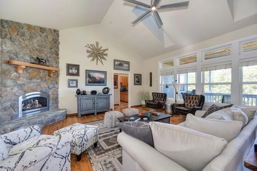 Immaculate home with all the bells and whistles. Single story, all custom home, with covered front and rear, easily maintained, trex decks. The exterior siding is Hardi-plank cement siding, and it is beautifully landscaped with fully automatic sprinklers. No worries about a water bill with 50 GPM well. No worries about high P.G.&E bills either, the Owned solar system currently has a zero dollar true up. Inside, the Large living room has vaulted ceilings, real wood plank floors, a propane fireplace, skylights, a commercial style ceiling fan and long range views through the wall of windows. The open concept merges to the dining area and chef's kitchen. There is an island with a gas range-top built-in, bar style seating and a thick slab of granite with chiseled edges. The kitchen features newer stainless steel appliances and a combo built-in oven with micro-convection oven above. The huge...