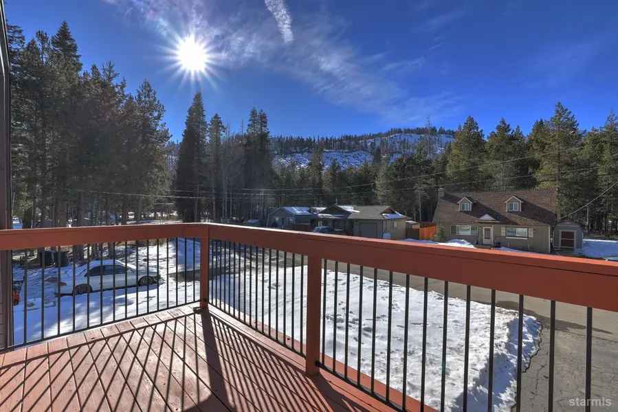 Welcome to your charming Tahoe getaway! Nestled in a serene neighborhood, this retreat is just off the beaten path yet conveniently close to delightful restaurants, coffee shops, and a grocery store. It's approximately 15 minutes from Sierra at Tahoe and Heavenly, and about 40 minutes to Kirkwood. Two golf courses are just down the road, and a short walk will take you to the river.Relax on the front deck with your favorite beverage. Inside, you'll find a spacious living room and a large dining area. The updated kitchen features granite countertops and a gas range, with a convenient half bathroom and laundry facilities on the main floor. Ascend the spiral staircase to discover two generous bedrooms and a full bathroom.Additional highlights include LED lighting, smart home locks, lights, and a thermostat, a durable metal roof, and a 50-amp service panel at the front of the cabin for easy h...