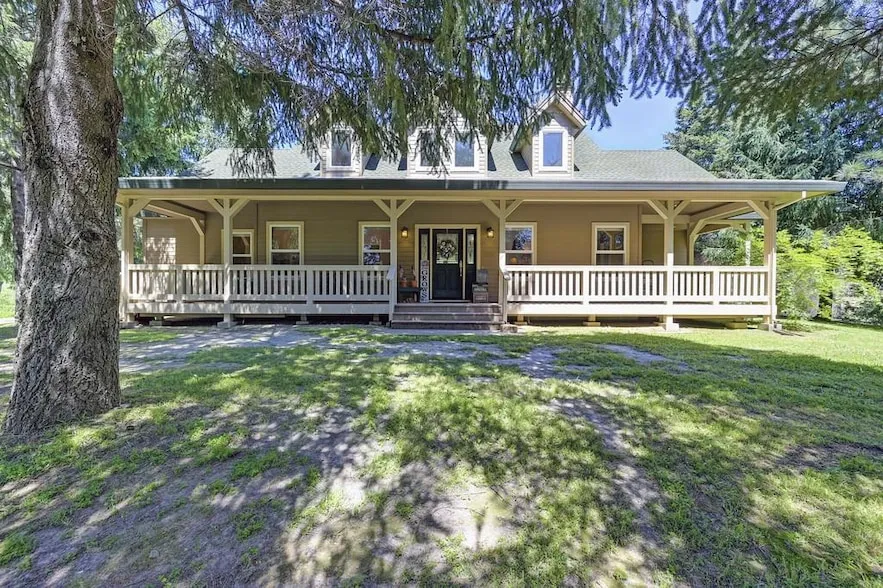 Looking for a beautiful horse property and modern custom-built farmhouse? This picturesque 9+ acre estate offers lush, usable land with mature trees and peaceful surroundings. The impressive 4-stall barn includes a large foaling stall, tack/storage room, breezeway, and engineered loft for storage or expansion. Other features include a round pen, day pen with run-in shed, and fencing with cross fencing perfect for your equine companions. A separate agricultural well ensures plenty of water year-round. The inviting 1,928 sq ft home features soaring ceilings and beautiful wood accents, providing an open and spacious feel exuding elegant country charm. The home has 3 bedrooms, 2 baths, and a beautifully upgraded kitchen boasting granite counters, rich cabinetry, and new appliances. Enjoy the warmth of a new Vermont Castings Defiant wood stove with raised hearth and floor-to ceiling rock surround, large windows framing serene pasture views, and a spacious laundry room with built-in storage and utility sink. Relax on the front wrap-around veranda or the rear private covered deck, take in the tranquil setting, and enjoy the ease of paved road access.