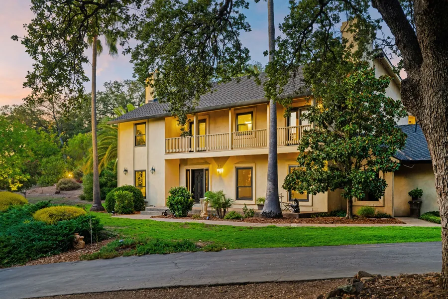 Welcome to an Italian-inspired villa with TWO homes on 3.34 usable acres in the prestigious gated equestrian community of Greenstone Country. Set in a serene park-like setting, the property is surrounded by mature landscaping, lush lawns, fruit trees, and open views where deer, wild turkeys, and rabbits wander freely. The nearly 3,400 sqft main home features 4 beds, 2 full & 2 half baths, new roof, newer HVAC, updated Andersen windows, and a timeless layout. Living spaces include a large formal living room with fireplace, a cozy family room with its own fireplace, an inviting kitchen overlooking the scenic backyard, and an upstairs loft/library. Two expansive balconies capture sweeping views of both the front and back grounds. A circular driveway leads to the main home, while a separate drive accesses the 800 sqft 1 bd, 1 ba ADU with an additional versatile room, its own garden area, and...