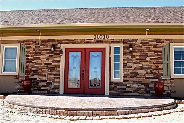 This Ranch Style Home is for someone who truly appreciates design & class. Stunning interior with upgrades throughout this home! The outside of the home is stucco with stone accents, custom shutters, and a stamped concrete porch. As you enter into the home you are greeted to a large, but warm, great room with high ceilings, upgraded carpets, & stone fireplace that flows from floor to ceiling. The kitchen will also delight you with the brazilian cherry hardwood floors, wood cabinets, travertine countertops, an island with stone accents, and stainless steel appliances. The bathrooms have rubbed-oil bronze fixtures with concrete countertops.