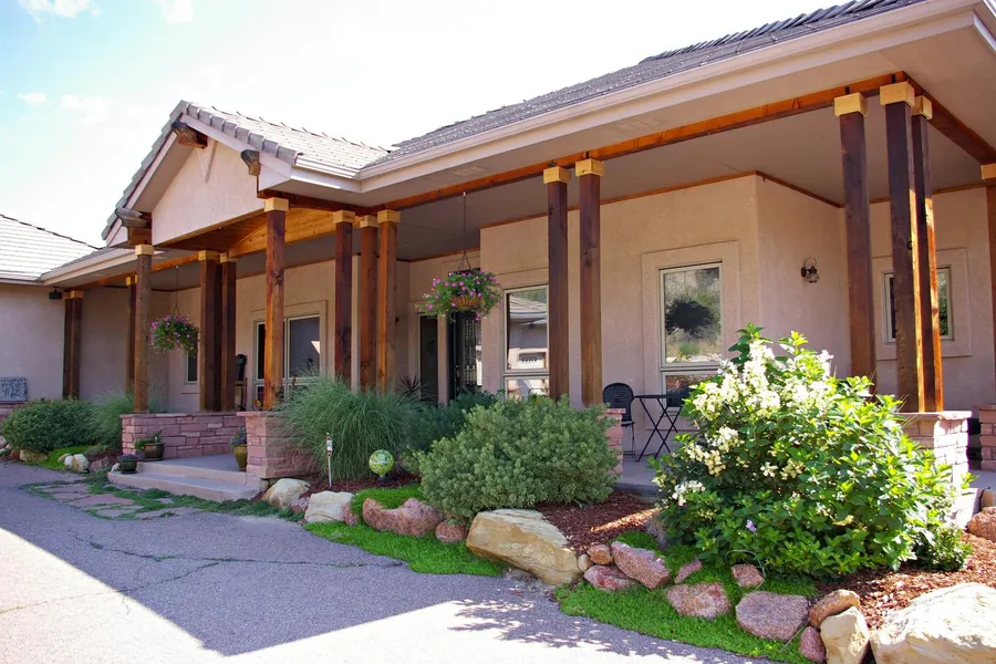 5480 Cordillera Ct Beautifully designed home on 1.57 acres in Pinon Mesa. Large covered porch leads to slate that is elegant and artful with a curved wall and stairwell done in Italian Plaster and completed with a custom iron railing along with an art nook. Wide plank hickory floors are balanced with high end carpet on the main level. Entertaining is so enjoyable in the expansive kitchen with alder cabinets, granite counters and stunning glass bar.