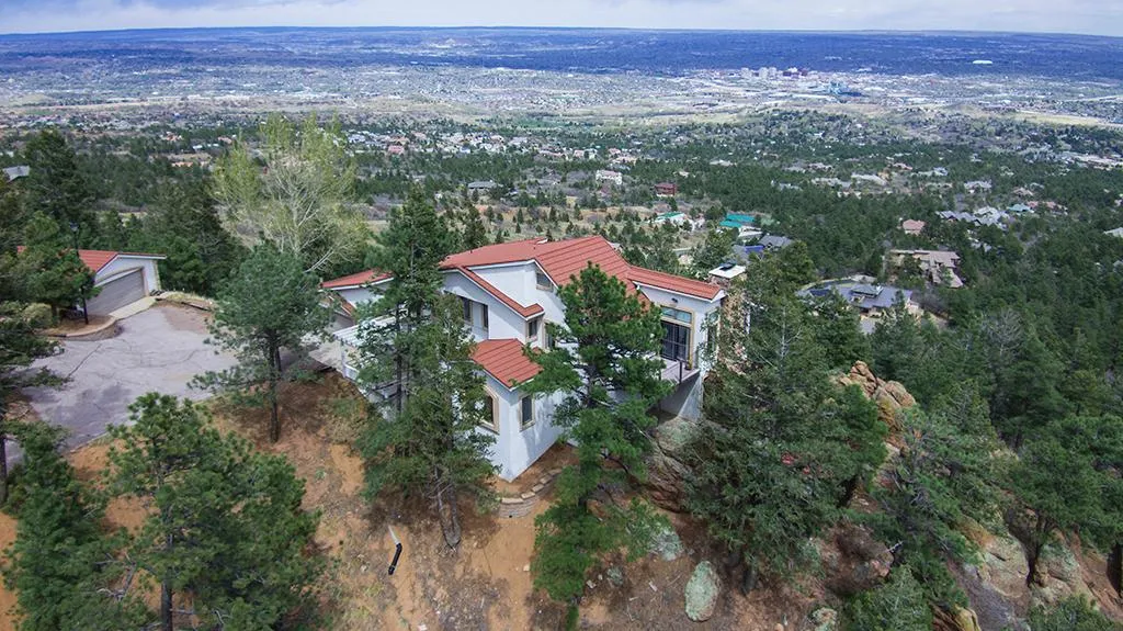 Custom 3 bedroom, 3 bath, 4 car garage mountain beauty on 2.5 acres overlooking Colorado Springs. Enjoy private mountain living in this custom home ready for your personal updating. Open floor plan with huge windows offering natural light and beautiful views. Don't forget to notice the wine cellar off the kitchen and loft in master bedroom. Multiple decks. Decra tile roof. Your choice of well water or connect to Colorado Springs city water. Hot water heat, central vac and newer stucco. Ideal for entertaining. Huge deck spans the length of the house with stunning views. Detached 2 car garage has dog run off of back door.