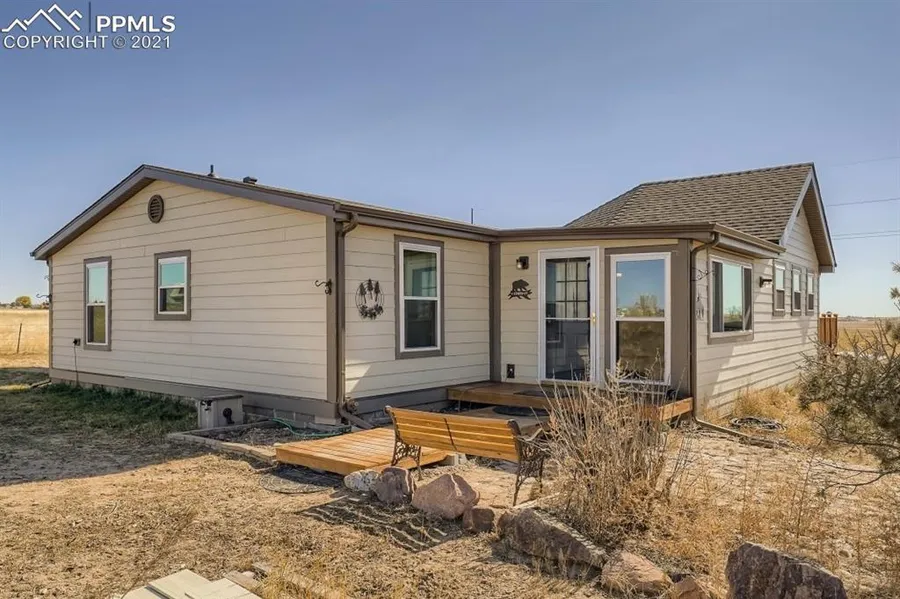 Welcome to your very own country oasis! This beautiful property sits on a massive 5-acre lot with amazing views of Pikes Peak and the mountain range. This stunning home is located only 5 minutes (2.5 miles) to the center of Falcon, providing almost immediate access to various shopping and dining options. The ranch style floorplan offers 5 bedrooms, an office/or 6th non-conforming bedroom, a recreational room, 2 bathrooms, a large dining room, and a centrally located living room and kitchen. This nicely sized dining room opens to a 345 square foot wooden deck with built-in lighting, perfect for entertaining or a quiet barbeque. Views from the back deck won't disappoint! The cozy kitchen comes with all appliances to include a gas stovetop, new backsplash, plenty of counter and storage space with an attached pantry. The sellers took amazing care of this property and were more than halfway t...