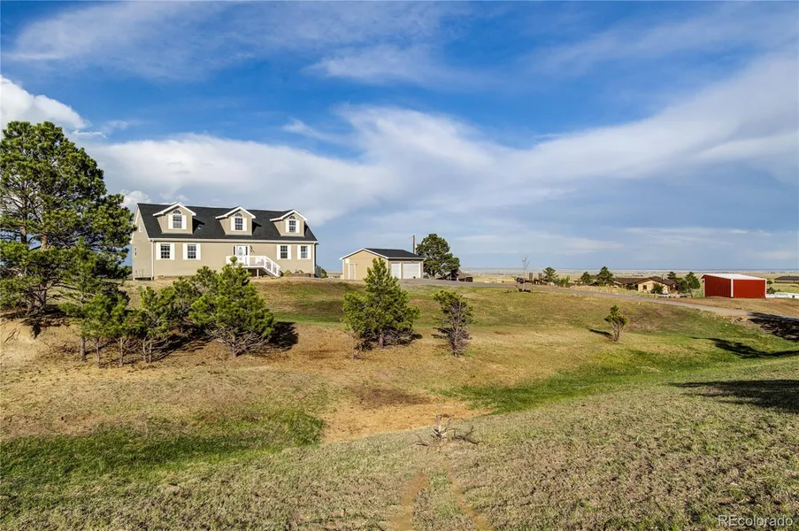 Fantastic opportunity to own over 5 fenced in acres of beautiful land with great views! Highly sought after Black Forest area. Bring your horses, goats, chickens as accommodations for all. No HOA or covenants. House is up to date with a newer roof, new carpet, water heater, stainless steel appliances, painting, and much more! Walk into a grand foyer, large family room with cozy fireplace to the right. Down the hall is the kitchen and dining area, a large separate laundry room with bathroom. The master has a private bathroom and walk in closet, across the hall is a bedroom. The upper level consists of a loft area, and 2 amazing and large bedrooms with walk in closets. A full bathroom completes this level. The lower walk out basement is enormous with very tall ceilings and partially finished with a pellet stove. Just waiting for your personal touch! The property includes a newer loafing sh...