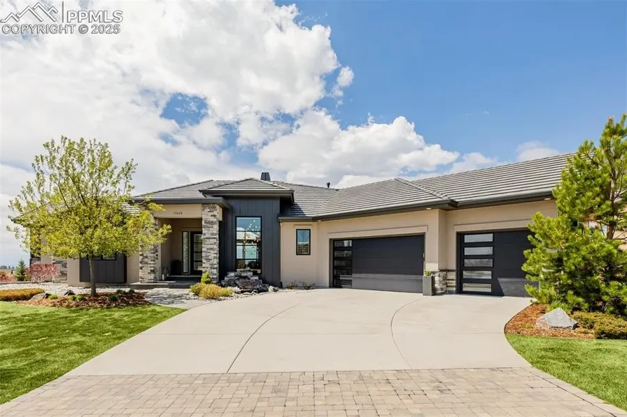 Tucked at the end of a tranquil cul-de-sac within the coveted gates of Calistoga at Flying Horse, this extraordinary residence is a modern study in elevated design, luxurious comfort, and architectural grace. Framed by unspoiled mountain vistas and sweeping views of the United States Air Force Academy campus, the home blends refined craftsmanship with contemporary sensibility across each light-filled level. An expansive open-concept living area sets a grand tone with soaring ceilings, a statement-making floor-to-ceiling stone fireplace, and a wall of glass that invite the outdoors in. The west-facing glass doors open onto a stylish balcony, where sunset views stretch across the horizon, perfectly extending the living space into the Colorado sky. Wide plank flooring and bespoke lighting fixtures lend warmth and sophistication throughout. The kitchen is a masterclass in modern elegance, wi...