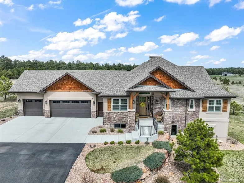 Luxury Living Meets Colorado Charm in the sought after community of Jackson Ranch. This Custom-designed home sits on a peaceful cul-de-sac with over 2.5 acres of beautifully landscaped and wooded grounds your own private retreat. Step inside to discover soaring ceilings, expansive windows with plantation shutters, and a thoughtfully designed open floor plan ideal for entertaining and everyday comfort. The gourmet kitchen is a chef s dream, featuring high-end appliances, granite countertops, custom cabinetry, and a generous island that invites gatherings. Cozy up by the stone fireplace in the great room or take in Colorado s four seasons from the spacious deck or walk-out patio. The luxurious main-level primary suite is a sanctuary with a spa-inspired bath, custom closet and private access to the outdoor living space. Additional bedrooms offer ample privacy, while the finished basement provides space to live a wet bar, additional family room perfect for guests or much more. Walk out to mature landscaping and a serene area to enjoy your coffee. With coveted District 38 schools, quick access to I-25, and nearby trails, golf, and shopping, this property is the rare combination of convenience, comfort, and Colorado beauty.