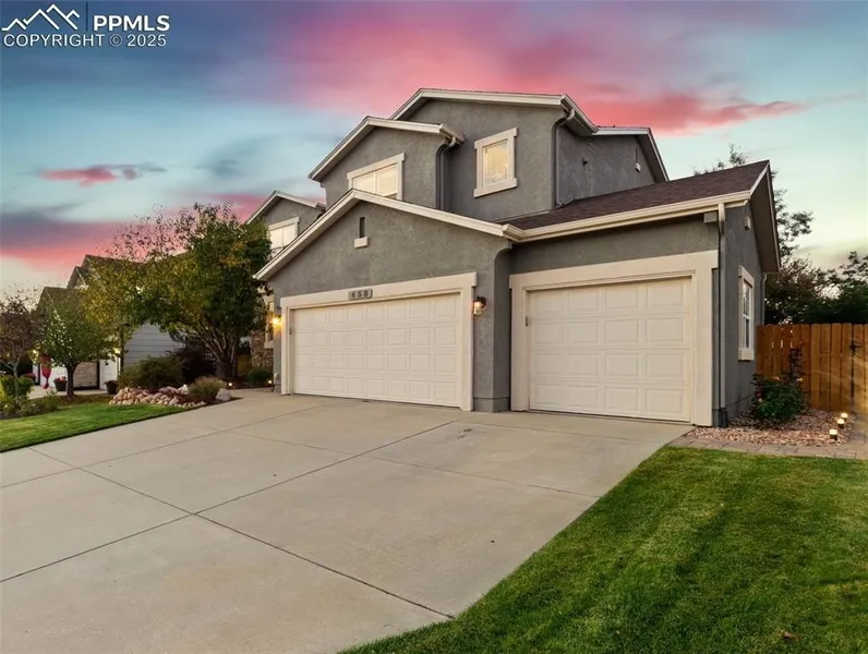Welcome Home to this one-owner, move-in-ready, immaculate home in Struthers Ranch! If you love outdoor living with Views, Views, Views... this is your place! The backyard will let you experience all Colorado seasons to the fullest! Featuring a gas or wood burning fireplace, pergola, gas fire pit, water feature, mutiple level stone patio's wood deck, raised bed garden areas, fenced in side yard with a shed, lots of grass, three apple trees, one cherry tree, lilac bushes, among other mature landscape, and views into the open space where you can watch the sunsets, or the animals walking by! A Colorado Dream!! Upon entering the home, you will be greeted by hardwood floors, a formal dining area, and a spacious kitchen featuring upgraded cabinets, stainless steel appliances, an eat-in area, and an island with barstools that seamlessly connect to the living room, complete with a gas fireplace perfect for cozy nights. Double French doors will lead to a private office, rounding out the main level. The primary bedroom is located upstairs with a gorgeously remodeled spa-like 5-piece bath. An oversized shower with a rainhead, plus two additional shower heads, a soaking tub, double vanities, a make-up area, and a walk-in closet. There are three additional bedrooms upstairs with a remodeled full bath featuring two sinks. A laundry room, complete with a sink, rounds out this level. The garden-level basement features a large family room and a pool table, which is included with the home. There are two more bedrooms, one is very large and can double as a secondary office. There is also an additional full bath and storage area. Located in Northgate, this home is close to USAFA and offers a quick drive to Colorado Springs or Denver. You will not want to miss this gem! Take a look today!