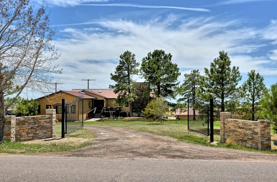 Enjoy spectacular views of Pikes Peak from either the wall of windows in the Great Room of this beautifully remodeled ranch home, or while relaxing on the extra large deck overlooking the West barns and lush, well maintained pastures. Perfect for entertaining, the gourmet kitchen includes granite countertops, an oversized island with prep sink and power, and double ovens with Viking convection. Large master suite has 5 piece bath with Travertine tile, soaking tub and separate shower. Interior stairs lead you to the door of the lower level apartment, which also has its own outside entrance. This turnkey facility has 3 barns; all have water/electric, and 18 stalls. All paddocks and stalls have Ritchie automatic waterers. Improvements include extra large 200x100 outdoor sand arena with excellent footing and drainage, 7 acre cross-country jumping course with beginner-advanced options, wash rack, covered storage for shavings, and 30x20 hoop building for additional hay or vehicle storage. East and West barns have tack rooms with lockers for boarders and more storage for hay and equipment. South barn features beautiful custom wood doors, inside stalls, and wood burning stove, can easily be used as an indoor arena, barn or machine shop and is wired for 220.