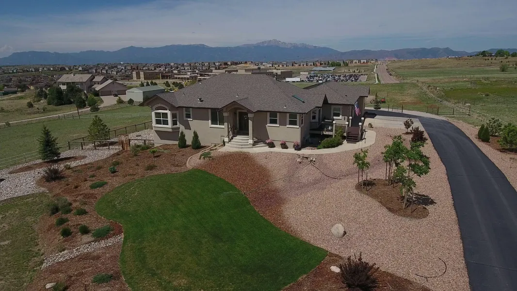 Amazing Horse Property with 4,572sq ft Semi-Custom Walkout Rancher. 4 bedrooms, 3 baths, 3 car garage. Home has hickory wood & tile flooring, vaulted ceilings & amazing view of Pikes Peak & the Front Range. 4.75 acres lot with 1296sqft Morton Barn w/four stalls, tack room, water & electricity.