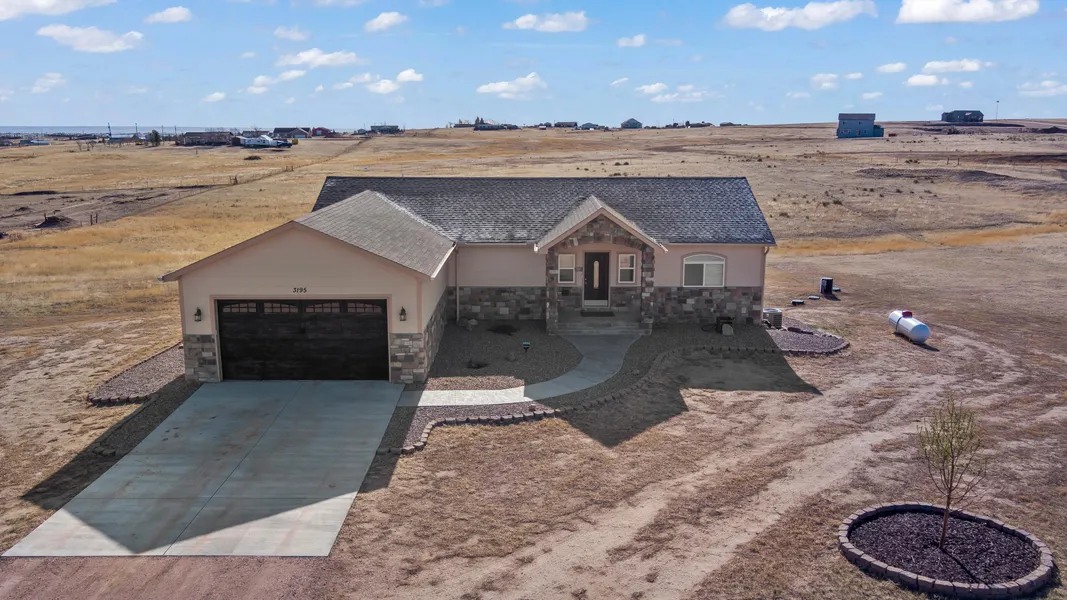 Stunning modern farmhouse-style home nestled on a spacious 5-acre lot in a quiet and peaceful neighborhood. This beautifully designed property offers a beautiful blend of rustic charm and contemporary elegance, with every detail meticulously crafted to create an idyllic country living experience. Greet your guests on the front porch or enjoy the stunning mountain views and watch the sunset. Step inside to find a warm and welcoming interior that features an open floor plan with vaulted ceilings and an abundance of natural light. The main level boasts a spacious living room with a cozy gas fireplace, a chef's dream kitchen with stainless steel appliances, granite countertops, and a large island, a dining area with access to the back patio. Also on the main level, you'll find the master suite, an en-suite bath with a soaking tub and separate shower, and a large walk-in closet. Two additional bedrooms and a full bath complete this level. The large walk-out basement is fully finished and offers additional living space with a family room, a game area, a wet bar, 2 additional bedrooms, a full bath, a third bonus room that could be used as a 6th non-conforming bedroom, laundry, and ample storage space. The 2-car garage provides plenty of room for vehicles and toys. Outside, the property features 5 acres, a deck off the main level and patio from the walk-out, firepit, and plenty of space for outdoor entertainment and activities. This exceptional property offers a rare opportunity to own a stunning home on a private and serene lot, while still being conveniently located just a short drive from Colorado Springs and all its amenities. Don't miss out on this amazing opportunity to make this home yours!