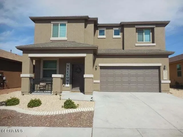 This lovely 2-story home presents well, with a welcoming porch featuring wrought iron railings. The desert landscaping in front is easily maintained with a bubble drip system. A calming color palette & carpeted flooring greet you in the first living space. Moving on through you come to the kitchen which has easy-care tile flooring, gleaming granite counters, stainless steel appliances, & handsome dark cabinets The dining area nestles in a bay window, bridging to the family room. You'll love having enough space in this room to put large sectional furniture there's access to the backyard! 4 bedrooms & 2.5 baths (powder room downstairs) include a generous primary suite boasting a twin-sink/granite-topped vanity, soaking tub, & separate shower, all with nice custom tilework. The good-sized loft gives another relaxing option. A laundry room is also upstairs - so smart! The covered patio in back is extended via a pergola-topped pavered patio space. With the grassy backyard it's great for family & friends..