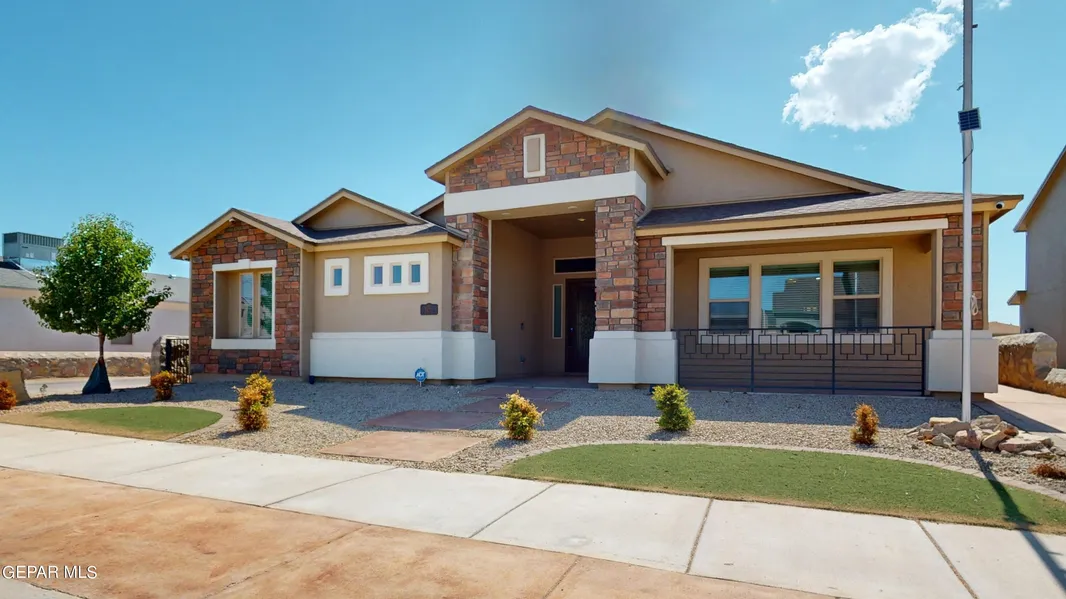 Welcome to your new single-level sanctuary! This stunning home offers a blend of modern convenience and serene charm, perfectly suited for comfortable living and entertaining. Step onto the inviting front porch and enter a meticulously maintained 4-bedroom retreat. The heart of the home features a zoned primary suite, ensuring privacy and relaxation. With FULLY PAID SOLAR PANELS, you'll enjoy energy efficiency and savings year-round. Formal dining is made easy with the built in buffet with added storage. The spacious interior flows effortlessly into a lovely backyard oasis, boasting low-maintenance landscaping and a pergola with an extended patio area. Ideal for outdoor gatherings or peaceful mornings with a cup of coffee. Car enthusiasts and hobbyists will appreciate the garage, complete with custom built-in cabinets, a workshop area, and mini split air conditioning. Fully insulated, this versatile space doubles as a party hub for hosting guests or simply unwinding in comfort. Easy drive to Ft. Bliss!