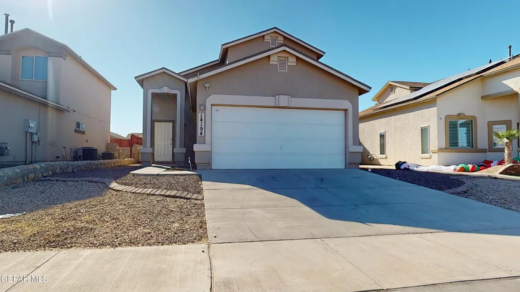 Come take a look at this MOVE-IN-READY home. As you walk in you are welcomed by an open floor concept connecting the family, dining and kitchen all in one area of the home. No space is lacking in the kitchen where you have plenty of granite counter top space, just enough cabinets and a pantry. The main bedroom is private and located in the lower level separated from the other two bedrooms located on the second floor. Laundry room is located inside home. This home is set on the lot allowing plenty of room for additional parking on the right side of the property. The low maintenance front yard is xeriscape, while the in the backyard you will enjoy family gatherings for those beautiful El Paso days. The back yard consist of added stamped concrete, a pergola and artificial turf. Come see this beautiful and make it yours today.