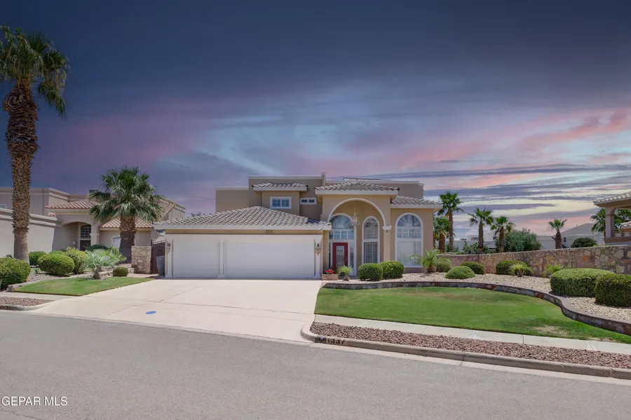 Welcome to 1337 Emerald Gate Lane-a beautifully maintained 4-bedroom, 3-bath home nestled in the desirable Stone Gate neighborhood in East El Paso. With 3,331 sqft of living space, this two-story gem features two spacious living areas, a formal dining room, and a bright kitchen with ample cabinet and counter space and a breakfast nook. Upstairs the oversized primary suite includes 2 walk-in closets, dual vanities, a walk-in shower and a soaking tub. You'll find generously sized bedrooms, perfect for a growing household or home office needs. Step outside to a fully landscaped backyard with a covered patio and large pool and spa-ideal for entertaining or relaxing after a long day. Additional highlights include paid off solar panels, refrigerated air, a three car garage, and a wet bar. Located near top-rated schools, parks, shopping, and dining, with quick access to Loop 375 and I-10. This ...