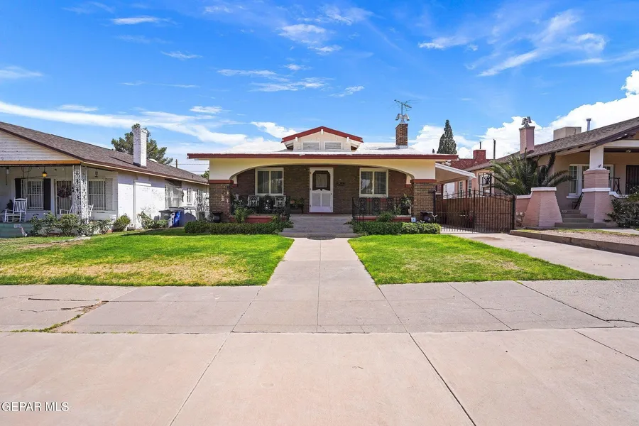 One-story brick residence in historic Manhattan Heights! This charming home is situated on a quiet street minutes from Memorial Park/Tennis Courts/ Swimming Pool/Library and Crockett Elementary. Main home features 1,305 Sq Ft living space, cool refrigerated air, gracious porch, hardwood floors, 2 comfortable bedrooms, 1 bathroom with stained glass accent, great room with fireplace, dining room, breakfast area, kitchen with tons of cabinet space and a 318 Sq Ft basement with laundry hookup and half bath. Detached 666 Sq Ft in-law quarters with one bedroom, living area, bath and extra storage room. Easy access to I-10 and Loop 375. Approximately 10 minutes to Fort Bliss, Downtown, Texas Tech and UTEP. This home requires some TLC and minor renovations.