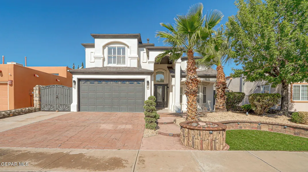 This beautifully maintained two-story residence showcases timeless design and modern comfort in a desirable neighborhood. A gated side entrance and decorative wrought-iron details add both privacy and sophistication. Inside, residents will enjoy a bright and open layout with abundant natural light, elegant finishes, and inviting living spaces ideal for entertaining or relaxing. This elegant kitchen combines craftsmanship and modern convenience. Featuring rich, dark wood cabinetry with glass accents, granite countertops, and a decorative tile backsplash, the space feels both warm and refined. A large center island with a built-in gas cooktop and sleek stainless-steel range hood anchors the room-perfect for entertaining or everyday cooking. The kitchen also offers a complete set of stainless-steel appliances, double wall ovens, and ample counter space, custom storage, and a breakfast nook ...
