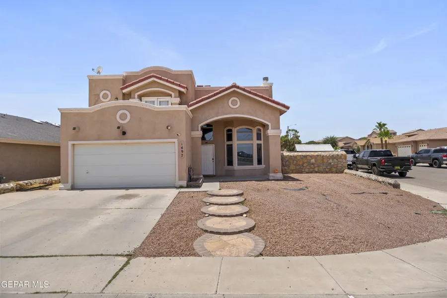 Welcome to a spacious 5-bedroom, 3-bath home offering 2,242 sq ft of versatile living space on a generous 7,800 sq ft corner lot. With two distinct living areas, the layout lends itself well to everyday living, entertaining, or creating dedicated spaces for work, hobbies, or guests. The primary suite features a private balcony, an ideal spot to start or end your day while the low-maintenance backyard with turf offers year-round greenery and room to personalize. Whether you envision a garden, outdoor entertaining space, or a quiet retreat, the possibilities are here. Tucked away on a quiet cul-de-sac and just minutes from schools, shopping, and dining, the home is also within walking distance to Burning Mesquite Park and offers convenient access to Fort Bliss. A solid opportunity for buyers looking to make a home their own while building long-term value. Virtually Staged Photos: Some images have been virtually staged to highlight the home's potential. Furniture and decor shown are digital renderings