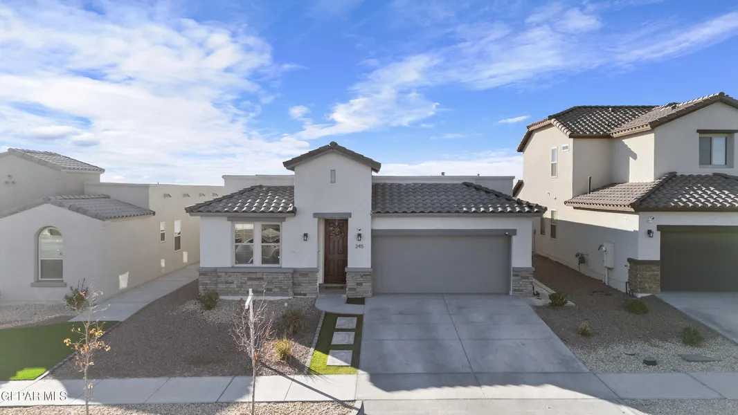 Better Than New! Stunning 2022 Build with 1,981 Sq. Ft.... Why wait for new construction when you can move right into this immaculate 2022 gem? Spanning 1,981 sq. ft., this 3-bedroom, 2-bathroom home combines modern efficiency with timeless style. The heart of the floor plan is the gourmet kitchen, boasting a massive granite island, oven and microwave combination, and a gas cooktop that flows seamlessly into the living area under elegant tray ceilings. The layout is designed for comfort, featuring wood-look tile in high-traffic areas and a dedicated office space for working from home. The primary suite serves as a true retreat, while the two additional bedrooms offer plenty of space for family or guests. With its stone-accented facade and pristine condition, and elegant and stylish low maintenance front and back landscaping, this home offers style, space, and peace of mind. The backyard ...