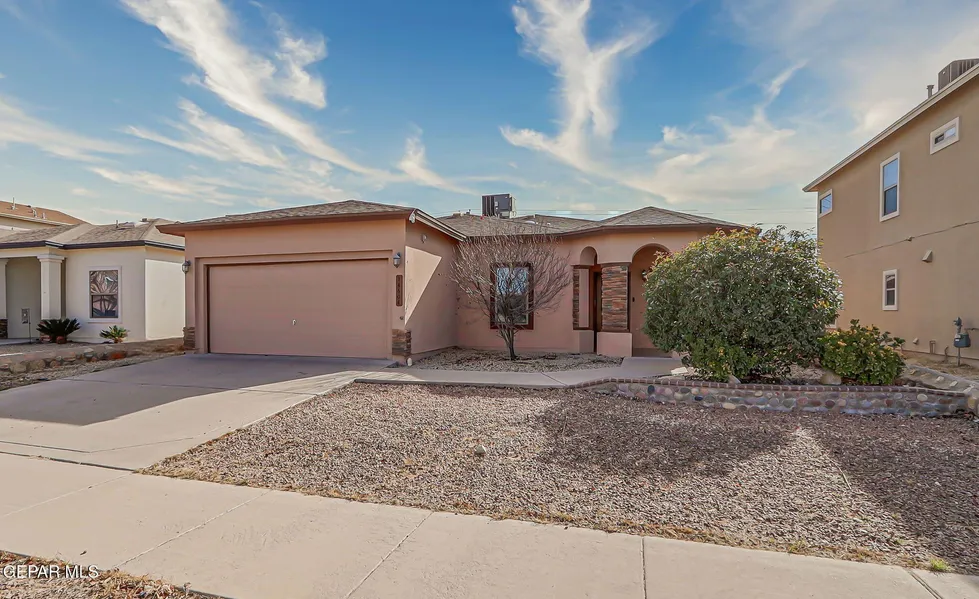 Located in Far East El Paso, this semi-custom home offers everyday convenience with quick access to Fort Bliss, shopping, medical care, entertainment, and schools. Curb appeal shines with stone exterior accents and fully landscaped front and back yards, while the backyard features low-maintenance AstroTurf for year-round green without the upkeep. Inside, cool refrigerated air, tile flooring, and a functional layout welcome you home. The open-concept kitchen includes granite countertops, stainless steel appliances, a pantry, and easy flow into the main living space-perfect for gatherings. A separate formal living room adds flexibility for entertaining or quiet moments. The spacious primary suite is a true retreat with dual vanities, a jetted tub, a stand-up shower, and a generous walk-in closet. Three additional bedrooms provide options, including a front-facing room with tile floors that...