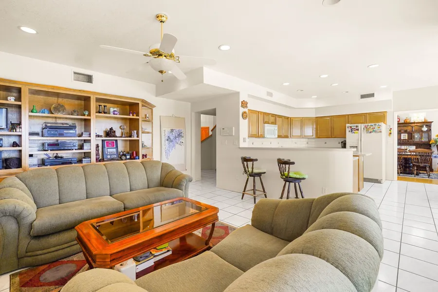 Experience the allure of this stunning 2-story Mediterranean-style home offering breathtaking panoramic views! This expansive residence features 5 bedrooms and 4.5 bathrooms, including dual primary suites on each floor. The main level boasts elegant formal living and dining areas, a cozy family room, an office, and a gourmet kitchen. A grand entrance with soaring ceilings welcomes you, adorned with exquisite hardwood and tile floors. Interior highlights include ceiling fans, a fireplace, built-in shelves, LED flush ceiling lights, plantation shutters, and abundant natural light. Upstairs, the second primary suite awaits, accompanied by a sizable balcony showcasing spectacular vistas. Step outside to discover an inviting pool, perfect for both entertaining and relaxation against a backdrop of scenic beauty. Nestled in a picturesque setting, this property offers the ultimate blend of luxur...