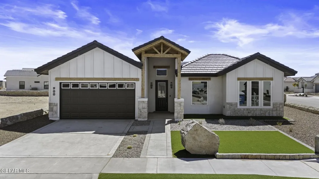Welcome to the FINESSE plan by El Paso's premier custom home builder. This home features a stunning modern farmhouse curb appeal with large windows for natural light throughout your home, and wood accents. Enjoy a large open concept living, dining and kitchen area which is fantastic for hosting guests and family. Home has a complete 2 car garage, walk-in pantry, and large laundry room with plenty of storage. The master retreat is privately located in the back of the home and accompanied by a spacious bathroom with a soaking tub, standup shower and walk-in closet. 3 bedrooms and a full bathroom are down the hall on the other side of the home. Not to mention, one of the bedrooms is a junior suite with its own bathroom. The backyard is spacious and equipped with a covered patio ready for entertainment. Come see this home for yourself and take pride in owning this iconic and spectacular home.