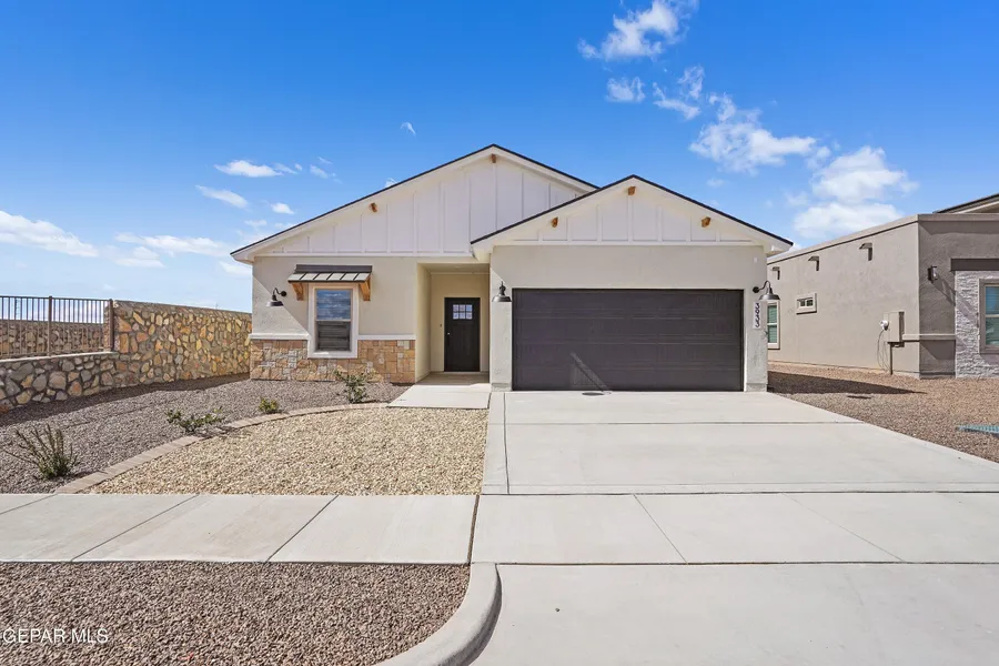 Almost complete! Discover affordable luxury in this stunning new build, a spacious family home packed with high-end features perfect for those wanting upscale living without the hassle. The thoughtfully curated layout centers on a massive quartz island in the open kitchen with gourmet appliances framed by solid wood cabinetry, a bold designer black splash, and seamless wood-look tile flooring. Enjoy premium quality moldings, meticulous craftsmanship, a spacious primary suite with a luxurious spa shower, and a practical mud area for everyday convenience. This smaller-scale gem delivers elevated style at an accessible price, in East El Paso with low city property taxes. Visit our model home at 15049 Resolve, 79938 today! No backyard neighbors + large lot! Energy Star Certified, nearby a park. Easy access to Montana + Loop 375, Fort Bliss and access is still developing. SPECIAL RATE OPPORTUNITY! CONTACT LISTING AGENT FOR DETAILS!