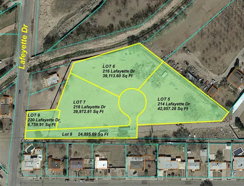 Great opportunity! Multiple parcels of land at this location. The address includes 214-220 Lafayette. There are five lots. Three of them with over 39,000 square feet. The smallest lot is Lot 9 with about 6,759 square feet. Visit site to view the layout of this wonderful property. We are selling it as a whole piece.